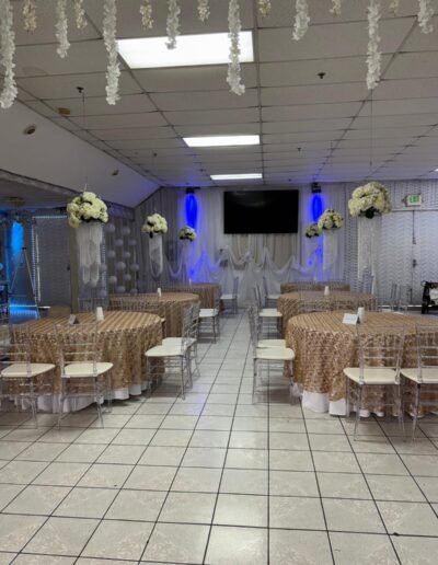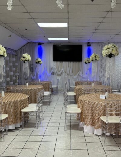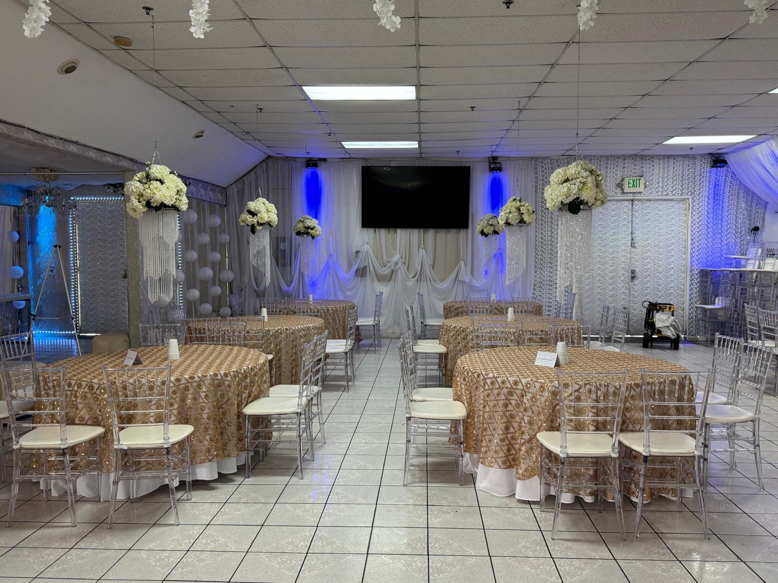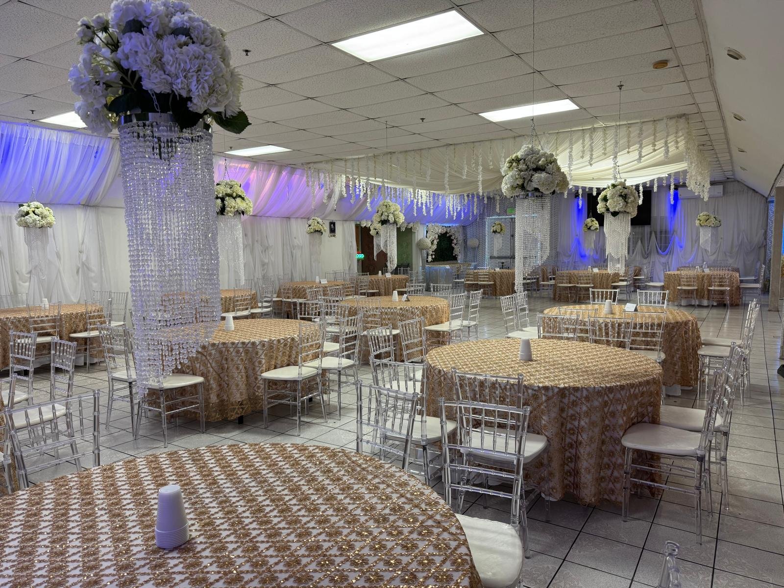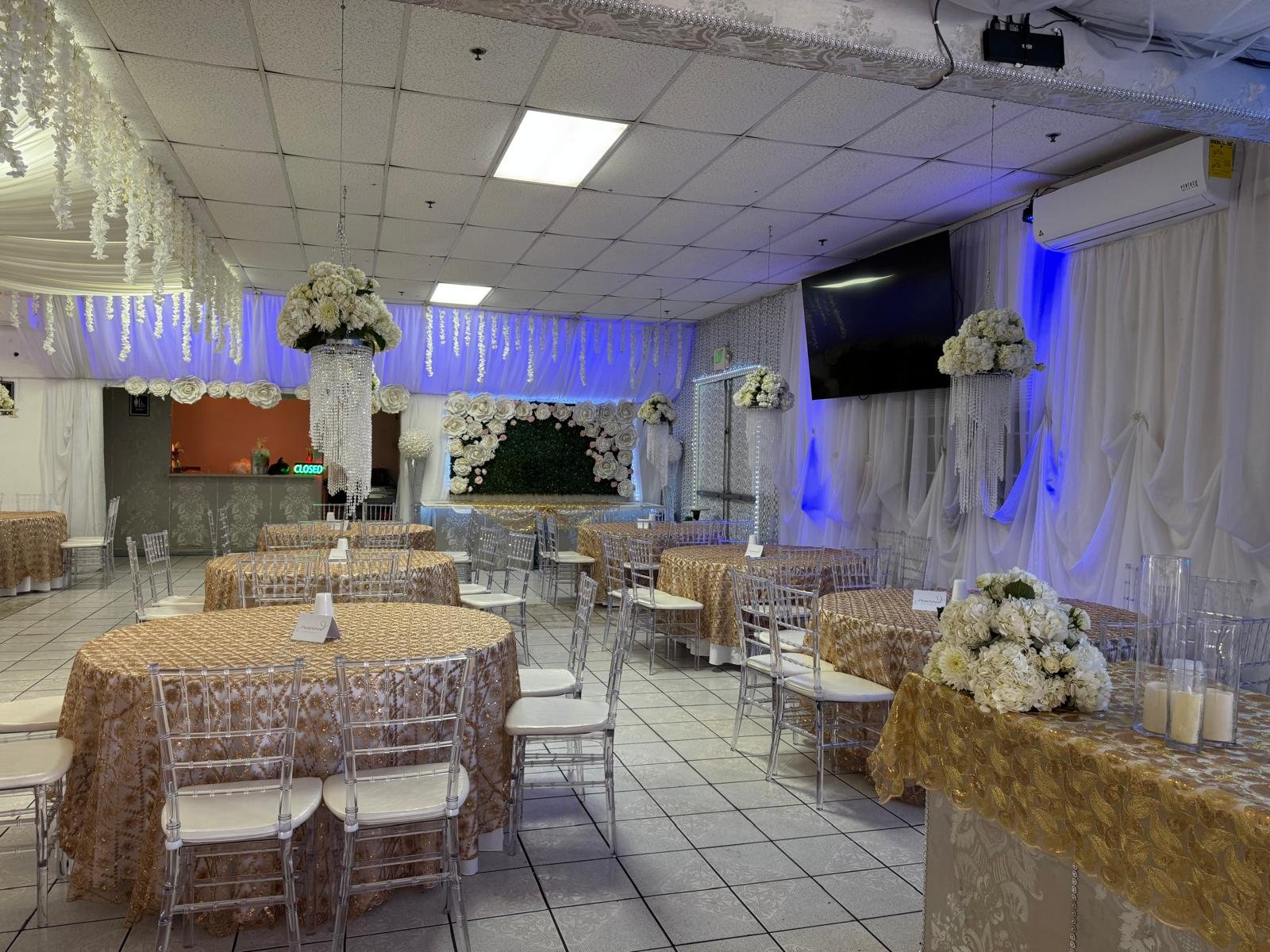 Host your event in a spacious, elegant hall that can be customized to fit any occasion — from weddings and quinceañeras to private parties and corporate gatherings. Our venue provides the perfect backdrop for unforgettable memories.